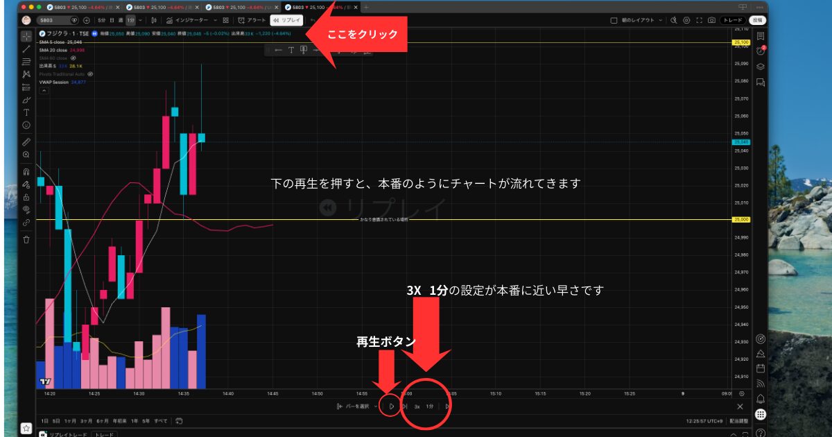 私は今、TradingViewのリプレイ機能で何度も練習しています。