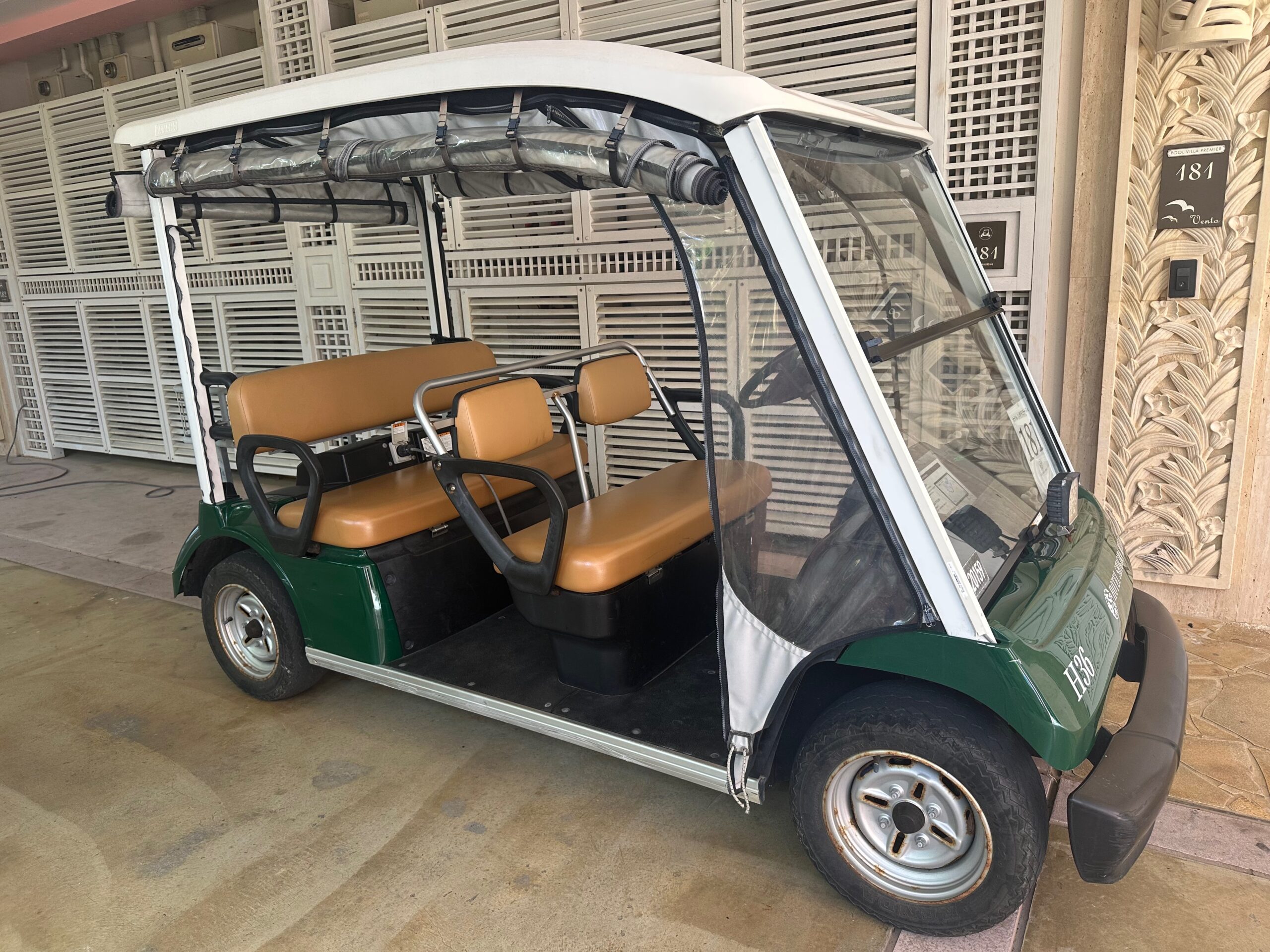 専用カートで部屋からプール・レストランへ