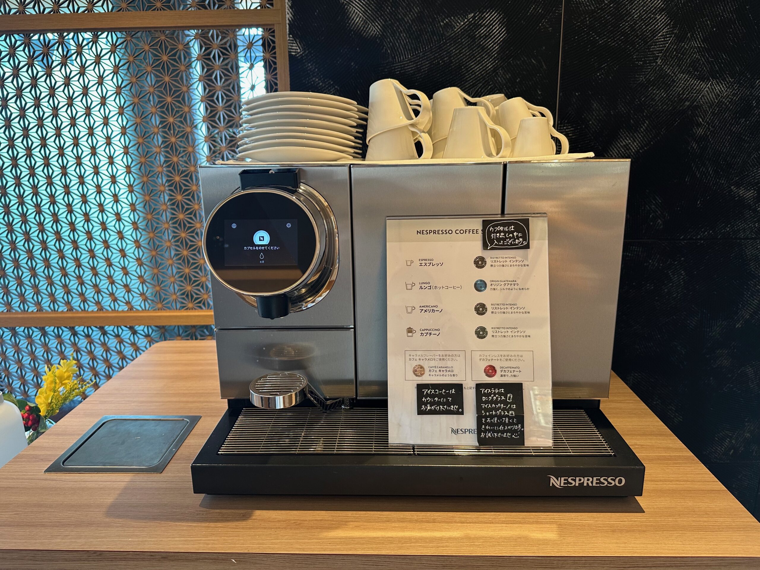 このラウンジは、チェックイン時だけでなく滞在中も自由に利用可能。