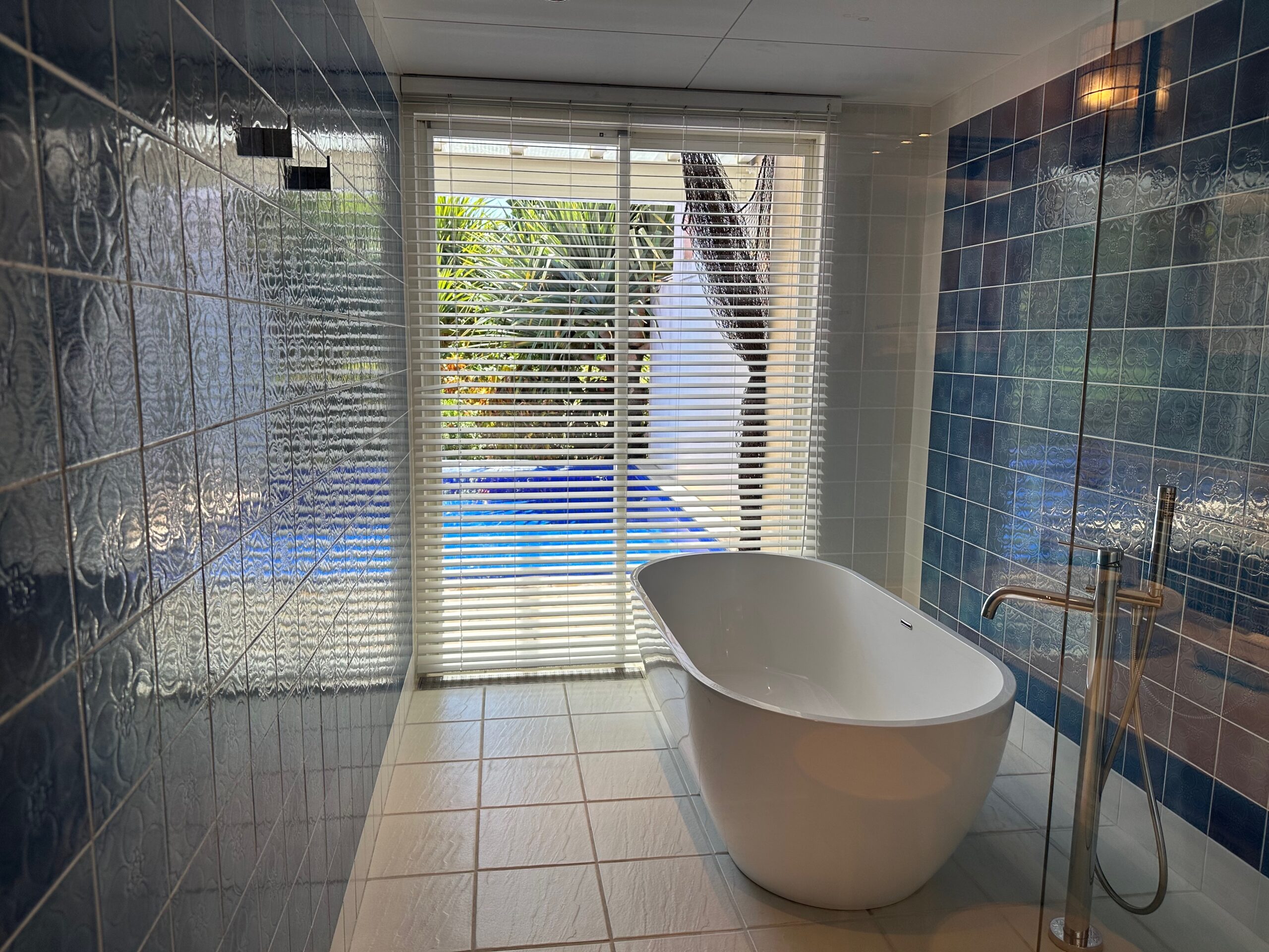 バスルームは窓からプライベートプールが見える設計。