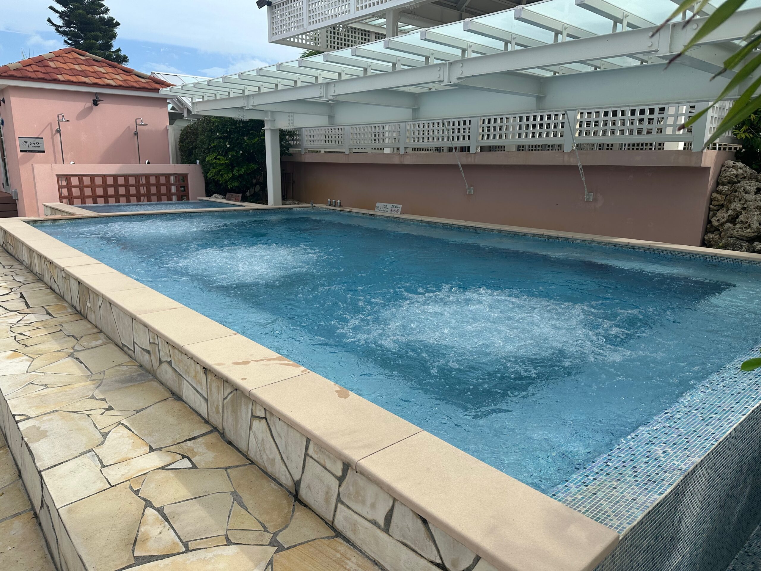 上のメインのプールの他に子供用の浅いプールと大人の泳ぐプールありました。